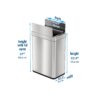 13 Gallon Pet-Proof Butterfly Lid Sensor Trash Can Enjoy ultimate convenience while you also keep nosy dogs and cats out of the trash! This touchless automatic trash can features a patent-pending Pet Lock that prevents pets getting into the garbage and making a mess. Premium Features: 1 Year Manufacturer s Service included! Wings open style has low clearance so it fits under kitchen countertops. The two low clearance lids open quickly for easy clean up in seconds. Easy on, easy off Pet Lock feature prevents dogs and cats getting into the trash, even when you are not home! Infrared Motion Sensor opens the lid automatically with just the motion of your hand 100% touch-free! 13 Gallon capacity holds lots of trash so you can empty the can less frequently Wide 14.5 diagonal lid opening makes throwing even bulky trash easy, quick, and mess-free Elegant and stylish stainless steel can body is fingerprint-proof and smudge-resistant. ABS plastic lid is durable and easy to clean Slim rectangular shape allows it to fit comfortably into any setting Trash Bag Retainer Ring keeps bags firmly in place and tucked out of view Fits standard kitchen trash bags. No custom bags required. Powered by 4 D batteries (not included) or optional AC Adapter (sold separately) Dimensions: 16.3 inch Depth x 10.4 inch Width x 22.6 inch Height (27.2 inch H with lid open) Brand Story iTouchless makes everyday objects smarter, easier to use, and more attractive, so you can spend your time on the important things. We were the first to market with the touchless sensor trash can nearly 20 years ago, and we continue to release innovative home products every year. Our relationship with our customers goes beyond the Manufacturer’s Service Period – your 100% satisfaction is assured!