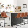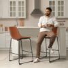 – Water-resistant Leather – Crafted with high-quality crazy-horse faux PU leather, JOINSUN bar stools set of 4 exude a distinctive farmhouse and rustic charm. The waterproof leather adds a touch of elegance to any space and is incredibly easy to maintain – simply wipe with a damp cloth to keep them looking pristine.