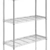 This 5-tier shelving unit is made of silver-plated welded steel wire to support up to 200 pounds of evenly distributed weight per shelf. Each of the shelves is adjustable in 1″ increments for precise shelf height adjustment. This makes it a great organization solution for your cleaning supplies, towels, blankets, electronic equipment, and much more. Its open wire design permits greater penetration of water, more light and air circulation, and resists dust build-up. Its durable silver-plated finish resists dirt and corrosion. Adjustable leveling feet help ensure stability on uneven surfaces. Assembly instructions are included, no tools are required. Adult assembly required.
