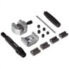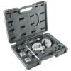 Hydraulic flaring tool kit can be used for brake lines, transmission cooling lines and fuel lines. Works with stainless steel, steel and soft metal tubing. Create precision 45 degree double, single and bubble flares in seconds. Set contains brake flare forming tool, 3/16″ and 1/4″ tube retaining dies, adapters, handle and a hard plastic storage/carrying case. User manual included.