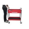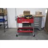 - Metal Utility Cart, Red, Locking Drawer, 2 Shelves, 3″ Swivel Casters,
