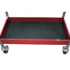 Durable construction for rugged shop environments. Sturdy, one-piece drawer handle. Cart provided ample storage. Large, fully-lined top and bottom storage trays to organize tools, shop accessories and parts for greater accessibility. Fully-lined drawer with lock to securely store tools when not in use. Four casters allow steady, quick movement. Two casters feature easy-to-operate locking mechanism to keep cart from rolling. Easy-to-assemble. Cart ships complete with all necessary hardware and instructions. Available in red only. Measurements: 17-1/2 in. W x 29-1/4 in. L x 34 in. H