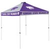Show your spirit from all sides with the Checkerboard Canopy. At 9 ft x 9 ft, this canopy has a durable, water-resistant canopy to keep you covered. It has a 6 foot height clearance on the sides and stands 9 feet at the tallest point. The canopy has sixteen logos on the alternating team color panels and valences. The frame retracts to 4 feet and comes with a storage bag on wheels for easy portability and storage. For more stability, use the included ground stakes.