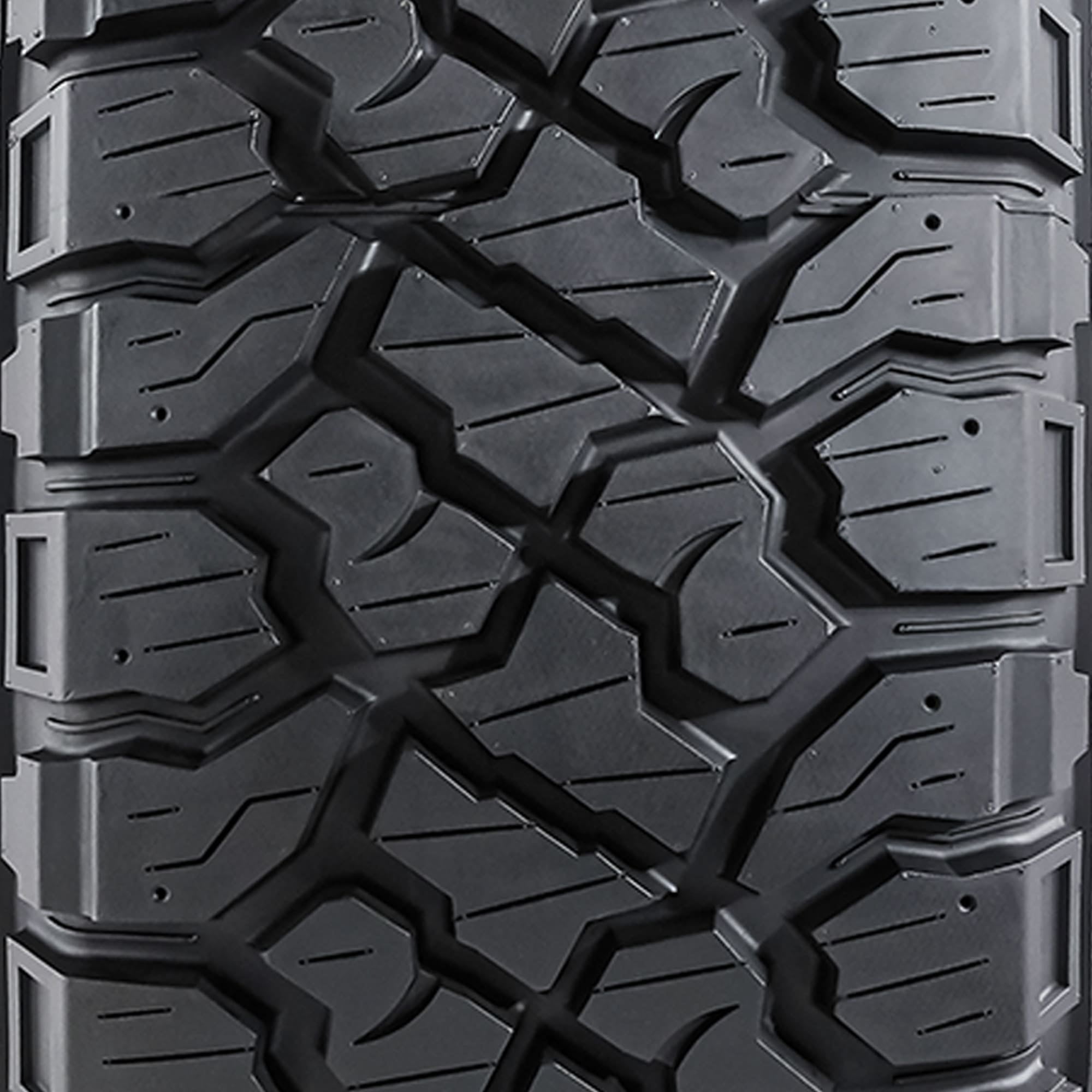 - Optimized tread design with interlocking center tread blocks delivers superior grip in mud, snow, and wet conditions