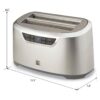 - Smart settings including 9 browning options, bagel, warm, defrost, one slot, and cancel