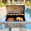 Presentamos la parrilla de gas de propano compacto de 3 quemadores de Kenmore con mesas laterales plegables que brinda comodidad, estilo y rendimiento a su experiencia de parrilla al aire libre. Esta parrilla de gas de diseño compacto y ahorrador de espacio ofrece 30.000 BTU de potencia de cocción y 512 pulgadas cuadradas de área de cocción combinada para que pueda cocinar deliciosas comidas para grupos pequeños y medianos (cocina hasta 6 personas). El área de cocción principal de 381 pulgadas cuadradas más el estante de calentamiento de 131 pulgadas cuadradas proporciona mucho espacio para todos sus favoritos de asar a la parrilla. Y gracias al termómetro de tapa incorporado, el encendido electrónico y las cuatro ruedas para facilitar la movilidad, podrás hacer un trabajo rápido con cualquier cosa que lances. Con un acabado recubierto de polvo y dos mesas laterales plegables, así como ganchos para todas sus herramientas de asar, estará listo para asar en poco tiempo. Haga de cualquier noche un evento con la parrilla de gas de propano compacto Kenmore 3-Burner que ahorra espacio y con estilo!