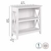 The Bush Furniture Key West Small 2 Shelf Bookcase offers a practical storage and display solution that gives your home a touch of casual style. This small bookshelf features a compact, versatile design that makes it a perfect choice for use in a home office, living room, entryway or virtually any other residential space. One fixed shelf and one adjustable shelf accommodate books, reference materials and decorations of various sizes. Each shelf supports up to 35 pounds, so you can store and display larger items with confidence. A post leg design and unique X pattern accents convey a casual appearance that works well with cottage, coastal and modern farmhouse style. This Small Bookcase has been tested to meet ANSI/SOHO quality standards for safety and performance and is backed by the Bush Furniture 1 Year Manufacturer’s Warranty. See the full collection for coordinating items available. Materials: Engineered wood and Laminates
