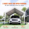 12 x 20 x 9.7 ft canopy garage shelter provides enough space for parking. It is also essential for outdoor parties, weddings, or other commercial activities.