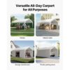 – Removable Sidewalls and Zipper Door: This heavy-duty car port features removable sidewalls and a zipper door, allowing for ventilation. You have the option to roll up or remove the door and sidewalls, leaving only the canopy for outdoor activities.
