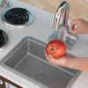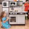 Featuring a refrigerator, freezer, oven and microwave with working doors and knobs that turn and click, this Uptown Espresso kitchen playset from KidKraft includes everything your little one needs to create delectable pretend meals.