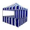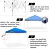 Frame and Cover: Slant Leg design provides extra stability. 10-foot by 10-foot footprint and 8-foot by 8-foot cover. Blue 210D Polyester cover provides an 8-foot 4-inch maximum center height.