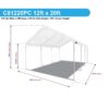 - Dimensions: 12ft 3in wide x 20ft 1in long x 6ft 8in side height x 10ft center peak height.