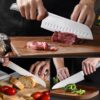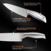 UNIQUE ERGONOMIC DESIGN – Unibody stainless steel bold-end handle for great balance, grip and durability, better than separated handles that is easy to hide filth or even crack. Plus the wider finger bolster for extra control, full tang kitchen knife is so comfortable to hold that you can cut easier, safer and faster.