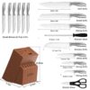 EASY CARE & STORE – A sleek, modern design fits in seamlessly among your other kitchen tools. All knives can be stored in wooden knife blocks to help keep blades sharp, reduce clutter from the counter, keep tidy and space-saving.