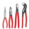 Knipex 9K 00 80 94 US, Cobra, Combination, Cutter, and Needle Nose Pliers Set. Set includes: 10-Inch Cobra Pliers (87 01 250), 10-Inch High Leverage Diagonal Cutter (74 01 250), 8-Inch Long Nose Pliers with 12 AWG stripping hole (26 11 200 S1), and 8-Inch Combination Pliers (03 01 200).