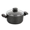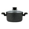 Ornella, produced from recycled, completely natural material, with friendly technology, makes delicious meals using very little oil with its extra scratch-resistant Volcanic-looking coating and high-temperature resistant silicone outer coating. The included glass lid allows you to keep an eye on your food while it cooks making sure your dish is perfect every time. The gorgeous black speckled appearance looks great in any kitchen.