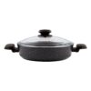 Ornella, produced from recycled, completely natural material, with friendly technology, makes delicious meals using very little oil with its extra scratch-resistant Volcanic-looking coating and high-temperature resistant silicone outer coating. The included glass lid allows you to keep an eye on your food while it cooks making sure your dish is perfect every time. The gorgeous black speckled appearance looks great in any kitchen.