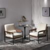 Ktaxon Accent Chair Lounge Armchair Modern Linen Fabric Upholstered Single Sofa with Black Coated Metal Frame Creamy White and Brown
