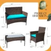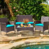 Traditional patio furniture is considered to be clunky, outdated, and unattractive, it’s time to replace them with our stylish and affordable wicker sets of high-quality construction. We have been working closely with our manufacturers on a variety of 4-piece wicker sets that are stylish, easy-to-maintain, and versatile enough as to fit most of the space.This Lacoo 4-Piece Wicker Outdoor Patio Furniture Set is made of strong steel frame with all weather PE rattan wicker. Excellent lounging choice for patio, porch, poolside or garden area. Easy assembly, no maintenance required, difficult to crack, split, rot, chip, fade or deteriorate.The cushion cover is also detachable.If you accidentally spill on your cushions or if dirt accumulates over time you can simply zip off the cushion covers and give them a quick wash to have them looking brand new.
