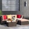 LACOO 5 Pieces Patio Rattan Sectional Set Outdoor Conversation Set , Beige
