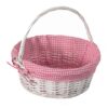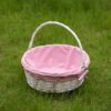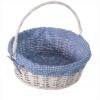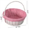 Large Round Willow Gift Basket With Gingham Liner And Sturdy Foldable Handles