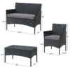 – PRODUCT DETAILS Materials: Synthetic Rattan, Glass, and Powder-Coated Steel. Dimensions: Sofa (L) 41.5 x (W) 19 x (H) 32 ; Table (L) 28 x (W) 16 x (H) 15.5 ; Chairs (L) 23.5 x (W) 19.25 x (H) 32 ; Seat Height 19.5 . Color: Gray.
