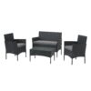 Lavish Home 4-Piece Rattan Outdoor Patio Furniture Set Combo Sofa, 2 Cushioned Chairs, and Table, Gray