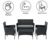 The 4-Piece Rattan Patio Chairs, Table, and Sofa Set by Lavish Home is a stylish way to add additional seating to your deck, porch, or poolside area. The durable synthetic rattan and powder-coated steel construction are built to withstand the elements while being an attractive addition to your backyard décor. This versatile patio set includes a table, a 41.5-inch-long outdoor couch, and two cushioned chairs that can be arranged in any configuration to fit your space. Whether you use this conversation set as patio seating or sunroom furniture, these comfortable pieces will provide an inviting spot to enjoy breakfast alfresco or relax with friends on a beautiful summer night.