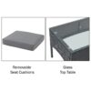 – COMFORTABLE DESIGN Sit back, relax, and enjoy an inviting summer day with this comfy conversation set. The cushioned chairs and sofa provide a pleasant place to sit, while the table offers ample space to set a drink, snack, or book.