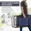 - Open chair: 43″H x 25″W x 63.5″D Folded chair: 37″H x 5.5″W x 25″D