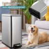LAZY BUDDY 13-gallon metal trash is made of sturdy steel metal and the lined bucket is made of high-quality plastic. When you need to waste disposal, you can tap the pedal gently with your toes. It features a soft-close technology that closes quietly without slamming, making it perfect for households with children or pets. The non-skid base keeps the trash can in place ensuring that it won’t tip over or move around. With a slim design, this waste bin (16.4″L x 9.7″W x 23.5″H) is perfect for small spaces, making it ideal for use in kitchens, bathrooms, and offices.