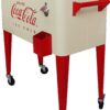 Get the party rolling withour Leigh Country CP 98131 retro metal outdoor cooler! This officially licensed Coca-Cola cooler is a decorative solution for storing the drinks you plan to serve for your festivities. The removable double lid allows you to fill the insulated poly liner with ice and beverages. Additionally, the interior compartment of this 80 qt. cooler has ample volume, so you can keep up with your thirsty guests. Featuring a design inspired by the iconic Coca-Cola logo, this whimsical icebox is a union of classic charm and modern-day function. If you are serving brews in old-fashioned bottles, it comes with a built-in bottle opener and cap catcher. For an added touch of convenience, the steel bar offers a place for you to hang a towel. This retro cooler has four casters for easy transport, and two of them can lock so the cooler stays in place when unattended. You can easily drain the melted ice after the party’s over by pulling out the included plug.