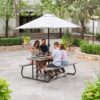 When the weather is nice, there is nothing better than a picnic with family and friends. The Lifetime Rough-Cut Plastic Picnic Table is the ideal setting for quality time with those most important to you. The Rough-Cut Series features a wood grain texture that provides the natural look and feel of wood without the maintenance of painting and staining. Stronger than wood, this low-maintenance table is stain resistant and easy to clean. The frame folds flat for compact and convenient storage. The unique edge and Rough-Cut table top offer an aesthetic look great for any yard. With the Lifetime Rough-Cut Picnic Table, you can create memories and enjoy time with your family and friends.