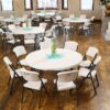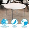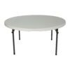 Lifetime 60-Inch Round Commercial Folding Tables are constructed of high-density polyethylene and are stronger, lighter and more durable than wood. The innovative nesting design lets multiple table stack together for space saving storage. They will not crack, chip or peel, and are built for indoor and outdoor use. The patented steel frame design provides a sturdy foundation and is protected with a powder-coated, weather-resistant finish. Perfect for banquets, meetings or events, Lifetime 60-Inch Round Folding Tables are built for the rigors of demanding commercial use and exceed challenging BIFMA standards.