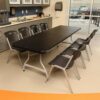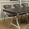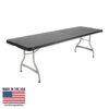 Lifetime 8-Foot Commercial Nesting Folding Table – Features a 96 in. x 30 in. molded tabletop (black) with a round folding frame (silver). This table is made with High Strength Low Alloy (HSLA) Steel, and has a nesting design that allows tables to stack together. 10-year limited warranty.