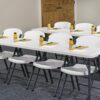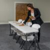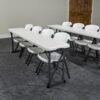 Make your seminar, conference, or meeting the best it can be with Lifetime Seminar Tables. Everyone in attendance will enjoy tremendous comfort thanks to the ample legroom provided by the intuitive design of the tables folding legs. Lifetime Seminar Tables are UV-protected, will not crack, chip, or peel, and are built for indoor and outdoor use, with nested edges for easy stacking and storage. The patented steel frame design provides a sturdy foundation with excellent durability and is protected with a powder-coated, weather-resistant finish. Built for the rigors of office and institutional use, Lifetime Seminar Tables meet the challenging BIFMA standards and are the perfect addition to your next office event.