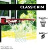 – Rim: The original classic basketball rim! The Classic Rim features a 5/8-inch solid-steel ring supported by 1/2-inch braces and an all-weather net.
