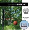 – Shatterproof Fusion Backboard- The Shatterproof Fusion Backboard integrates a shatterproof polycarbonate playing surface with an unbreakable polyethylene frame for a durable, pro-glass look. Graphics are screen-printed with UV-protected inks for superior color and protection against the elements.
