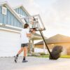 Lifetime’s portable basketball hoops are the perfect option for beginning and seasoned players alike! Move it anywhere you need it yard, driveway, or home court with an easy-to-transport base that fills with sand or water to become stable and reliable. This system from Lifetime Products features a 50 in. Shatterproof Fusion backboard with frame pad. A Speed Shift height adjustment mechanism that adjusts from 8 to 10 feet high so everyone can play at their own skill level. It also includes a Slam-It Rim with an all-weather net and a 3 in. diameter round steel pole. With a 34-gallon portable base complete with wheels, this system can easily be moved to a desired location. So bring the arena to your home with a residential basketball system from Lifetime Products.