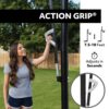 – Action Grip- Action Grip Height Adjustment – Lightly squeeze handle to adjust hoop from 7.5 to 10 feet in 3-inch increments
