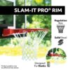 – Rim – The Slam-It Pro Rim is built for aggressive play with an arena-style wraparound brace, supporting a 5/8-inch ring of solid steel. The double-compression springs let you slam it like a pro!
