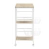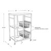 – The metal body supports 2 baskets, perfect for storing nonperishables, as well as 2 lower shelves and a top platform made of MDF.