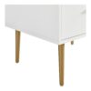 - Sleek sculpted gold drawer pulls and legs add just the right touch