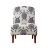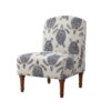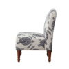 Elevate your reading nook or living space with this charming accent chair, designed to complement a modern coastal aesthetic. Showcasing a whimsical turtle print in rich indigo and soft cream tones, the upholstery—a durable polyester and cotton blend—adds a playful yet sophisticated touch. Plush cushioning ensures a cozy seating experience, while the sturdy wooden frame provides lasting durability. The elegantly turned wood legs, finished in a stylish gray wash stain, infuse a subtle vintage charm. With its armless silhouette, this chair seamlessly fits into compact spaces, making it a versatile and inviting addition to any room.