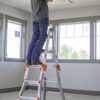 – Air craft grade lightweight aluminum ladder provides versatility and stability while you work