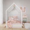 Let your child’s playtime imagination run free with this uniquely designed Little Seeds Skyler Metal House Twin Bed.