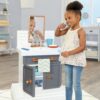Kids can pretend to get ready in the morning just like their parents with the super realistic Little Tikes First Bathroom Sink. The electric pump makes the water run, so kids can pretend to wash their hands and brush their teeth. Plus, the hair dryer really blows air for make-believe hair styling play. The First Bathroom Sink encourages imagination, and allows kids to gain a sense of responsibility and good personal hygiene. The First Bathroom Sink is easy to set up to its full size (15 wide x 11.5 deep x 26.5 tall) and is great for small spaces. Includes 12 realistic bathroom accessories, which can all be stored under the sink for easy cleanup.