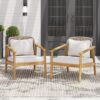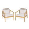 Louisa Farmhouse Outdoor Patio Woven Rope Club Chairs, Armchairs with Solid Wood Frames and Cushions, Beige, Set of 2