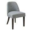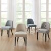 - Plywood frame, upholstered seat & back with fabric & foam, solid wood legs