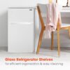 - Glass refrigerator shelves provide for efficient organization and easy cleaning